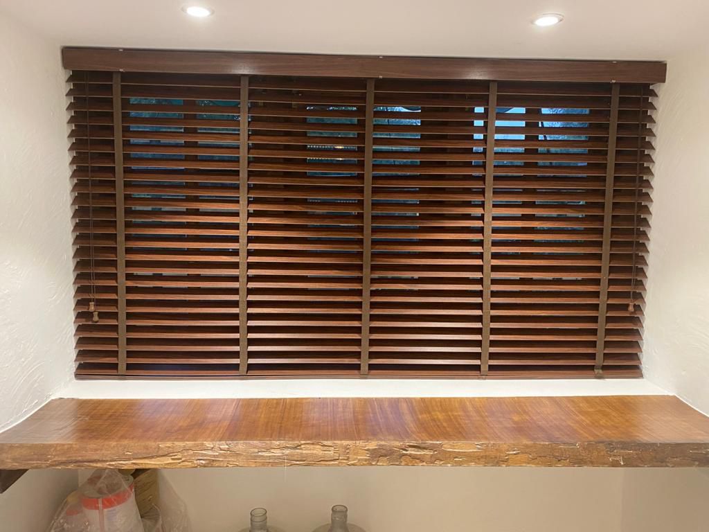 wooden blinds in model town